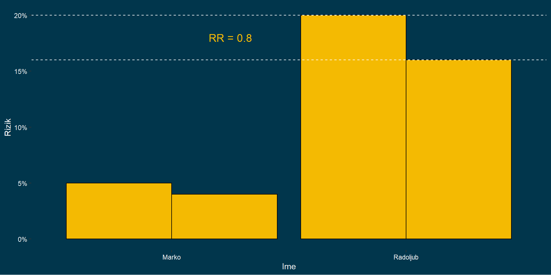 \[ RR = \frac{\text{rizik sa statinom}}{\text{rizik bez statina}} \]