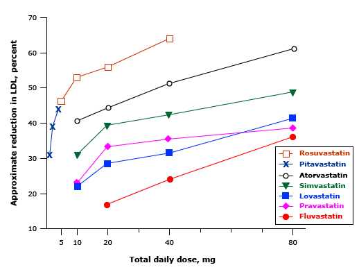 Redukcija LDL-a u odnosu na vrstu statina.