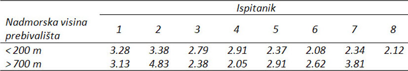 nadmorskim visinama prebivališta